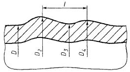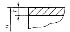 5.1.3.1 По согласованию между изготовителем и потребителем (заказчиком) допускается для деталей исполнения 2 контролировать D и D1 вместо d и d1 соответственно. При этом предельные отклонения должны быть не более: ± 0,5 мм при D или D1 до 57 мм; ± 1,0 % » » » » св. 57 до 219 мм; ± 1,25 % » » » » 219 мм. 5.1.3.2 Предельные отклонения наружного диаметра отводов исполнения 2 в неторцевых сечениях не должны быть более ± 3,5 %. 5.1.3.3 Относительная овальность отводов исполнения 2 - не более 6 %. 5.1.3.4 Угол между плоскостью торца и образующими прилегающих к торцу поверхностей (исключая скос кромок под сварку) деталей исполнения 2 (например при переходе от Тв к Т и T1) должен быть не менее 60° по наружной поверхности и 70° - по внутренней поверхности. 5.1.3.5 На отводах исполнения 2 допускается волнистость (гофры) (рисунок 2) высотой h1, вычисленной по формуле (1), но не более 0,03 D. При этом размер l должен быть не менее 15 h1. Рисунок 2 5.1.3.6 На цилиндрической части магистрали тройников исполнения 2, изготовленных гидроштамповкой, допускается волнистость (гофры) по п. 5.1.3.5. Высота волн h1 должна быть, мм, не более: 1,0 - при D = 57 мм; 1,5 - при D от 76 до 133 мм включ.; 2,0 - при D от 159 до 219 мм включ.; 3,0 - при D = 273 мм; 4,0 - при D от 325 до 426 мм включ. Размер l при этом должен быть не менее 3 h1. (Введен дополнительно. Изм. № 1) 5.1.4 Форма кромок торцов деталей исполнения 1 должна соответствовать указанной в таблице 6. Таблица 6 - Форма кромок деталей исполнения 1 Размеры в миллиметрах