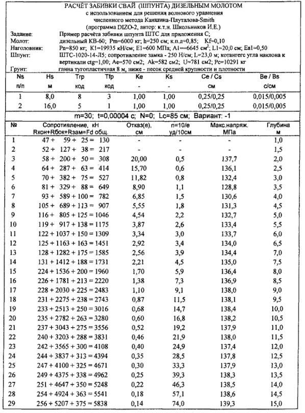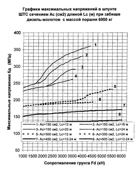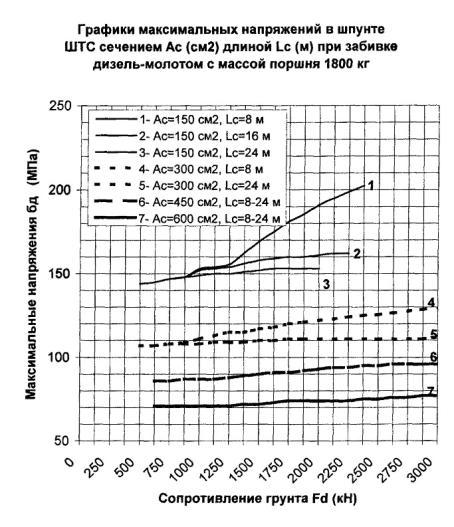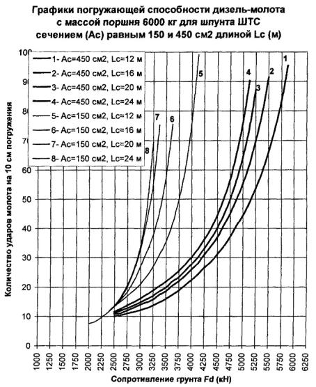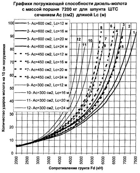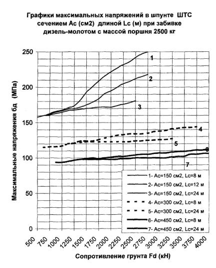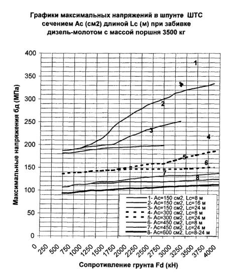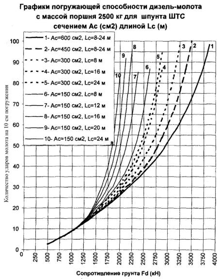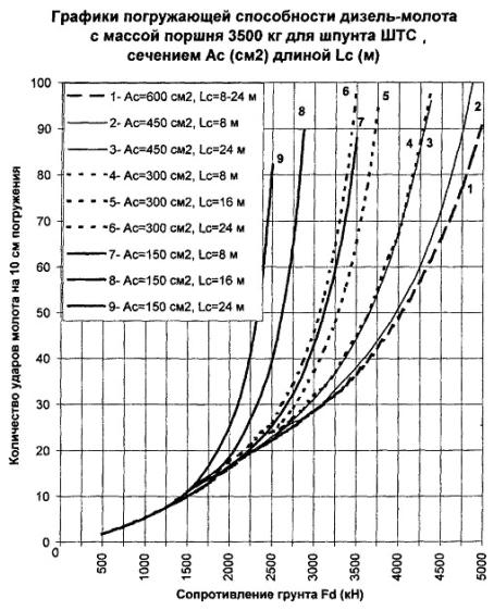 = 315 см2 в конце забивки молотом 3500 кг, равные σ Погружающая способность дизель-молота