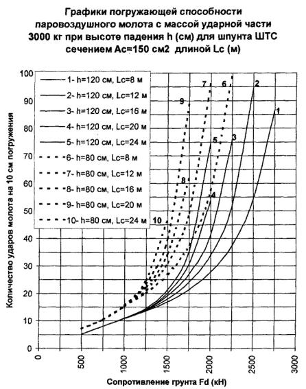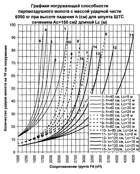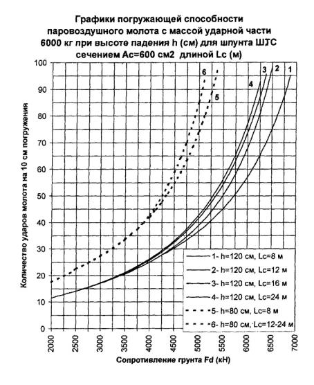 определяется значение погружающей способности молота 5000 кг при сечении шпунта