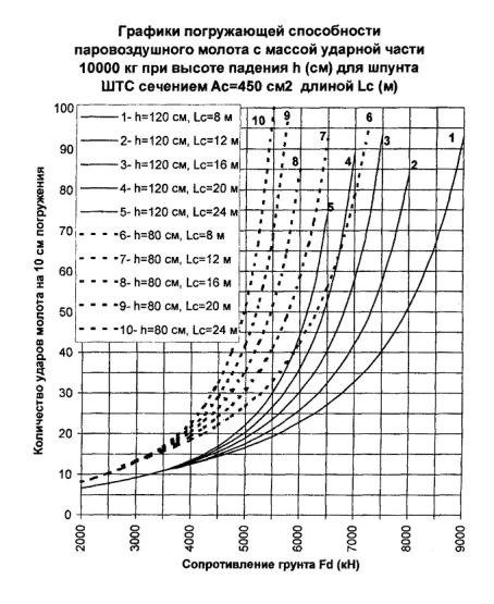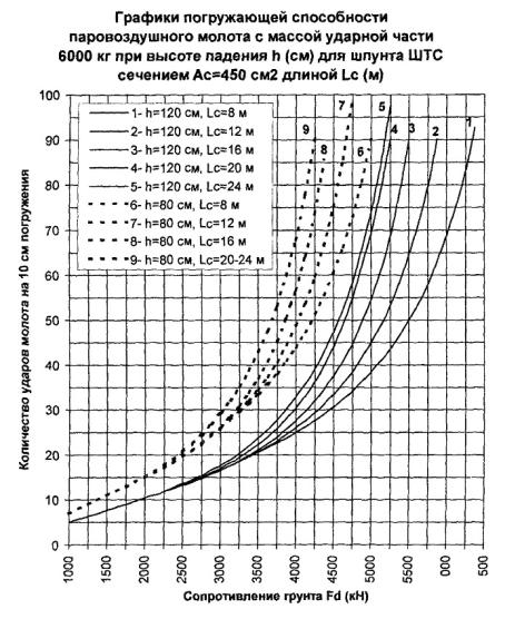в конце забивки молотом с поршнем 5000 кг, примерно равные σ Погружающая способность