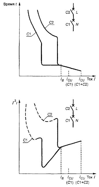 испытания на короткое замыкание ПРИЛОЖЕНИЕ А(обязательное) Координация в условиях короткого замыкания между выключателем и другим устройством защиты от короткого замыкания, объединенными в одной цепиА.1 Введение Для обеспечения координации в условиях короткого замыкания между выключателем С1 и другим устройством защиты от короткого замыкания (далее - УЗКЗ), объединенными в одной цепи, необходимо учитывать характеристики каждого из устройств, так же как и их поведение в этом объединении. Примечание - УЗКЗ может включать дополнительные защитные устройства, например реле перегрузки. УЗКЗ может состоять из плавкого предохранителя (или комплекта плавких предохранителей) (см. рисунок А.1) или другого выключателя С2 (см. рисунки А.2-А.5). Сравнение индивидуальных рабочих характеристик каждого из двух объединенных устройств может быть недостаточным, поэтому необходимо обратить внимание на поведение этих двух устройств, включенных последовательно, поскольку полным сопротивлением устройств не всегда можно пренебречь. Рекомендуется это учитывать. Для токов короткого замыкания рекомендовано вместо времени сделать ссылку на I2t. C1 часто соединен последовательно с другим УЗКЗ по причине способа распределения энергии, принятого для данной установки, или вследствие того, что наибольшая отключающая способность одного С1 может быть недостаточной для предложенного назначения. В таких случаях УЗКЗ может быть установлен в удалении от С1. УЗКЗ может защищать линию питания нескольких выключателей С1 или лишь одного выключателя. В таком случае потребителю или компетентной службе приходится чисто теоретически принимать решение о способах достижения оптимального уровня координации. Данное приложение должно способствовать принятию такого решения и дать представление о типе информации, которую изготовитель должен предоставить потенциальному потребителю. В приложении приводятся также требования к испытаниям, если для предполагаемой области применения они необходимы. Термин «координация» определяется как селективность (см. 2.5.23 МЭК 60947-1, а также 2.17.2 и 2.17.3), а также как резервная защита (2.5.24 МЭК 60947-1). Рассмотрение селективности может быть проведено чисто теоретически (см. А.5), в то время как для проверки резервной защиты обычно требуются испытания (см. А.6). В зависимости от выбранного критерия при проверке отключающей способности возможно указание номинальной предельной наибольшей отключающей способности (Icu) или номинальной рабочей наибольшей отключающей способности (Icu). А.2 Область применения Данное приложение служит инструкцией и формулирует требования по координации выключателей с другими УЗКЗ, объединенными в одной цепи, как в отношении селективности, так и резервной защиты. Цель данного приложения - установить: - общие требования к координации выключателя с другим УЗКЗ; - методы и испытания (если необходимо), предназначенные для проверки условий соблюдения координации. А.3 Общие требования к координации автоматического выключателя с другим УЗКЗ А.3.1 Общие положения Теоретически координация должна быть такой, чтобы выключатель (С1) срабатывал один при любых значениях сверхтока вплоть до номинальной наибольшей отключающей способности Icu (или Ics). Примечание - Если значение ожидаемого тока повреждения в данной точке установки ниж