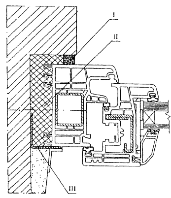 4.3 Класс монтажного шва по показателям сопротивления теплопередаче, воздухо- и водопроницаемости, паропроницаемости, деформационной устойчивости, звукоизоляции устанавливают в рабочей документации на узлы примыканий оконных блоков к стеновым проемам. 4.4 Стойкость монтажных швов к силовым эксплуатационным воздействиям классифицируют по показателю деформационной устойчивости. За показатель деформационной устойчивости принимают величину отношения значения наибольшего изменения заданного размера монтажного шва (без разрушения или критического снижения заданных характеристик) к значению заданного размера шва, выраженную в процентах. 4.5 Классификационными признаками паропроницаемости монтажных швов являются: - величина и соотношение значений сопротивления паропроницанию слоев (материалов) монтажного шва; - величина приращения расчетного массового отношения влаги в материале центрального слоя шва за период влагонакопления. Пароизоляционные свойства монтажных швов могут также характеризоваться конструктивными признаками. Например, наличием или отсутствием пароизоляционной прокладки между пенным утеплителем и поверхностью стенового проема. Требования к пароизоляции монтажных швов и их значения устанавливают в проектной и конструкторской документации на конкретные строительные объекты. (Измененная редакция. Поправка.) 4.6 Условное обозначение монтажного шва должно включать в себя буквенное обозначение «ШМ» - шов монтажный, цифровые обозначения классов по показателям сопротивления теплопередаче и деформационной устойчивости. Пример условного обозначения монтажного шва: ШМ III-I ГОСТ 30971-2002 - шов монтажный с классами по сопротивлению теплопередаче - III, деформационной устойчивости - I. В договоре, паспорте и другой документации на монтажные швы рекомендуется дополнительно указывать классификацию швов по другим классифицируемым параметрам, а также другую техническую информацию по согласованию изготовителя с потребителем, в том числе конкретные значения (диапазоны значений) технических характеристик монтажных швов и материалов, применяемых для их устройства, подтвержденные результатами испытаний. 5 Технические требования5.1 Общие положения5.1.1 Монтажный шов состоит из трех слоев, которые подразделяют по основному функциональному назначению: наружный - водоизоляционный, паропроницаемый; центральный - теплоизоляционный; внутренний - пароизоляционный. Каждый из слоев монтажного шва может, кроме основных, выполнять и дополнительные функции (например, наружный слой может иметь существенное сопротивление теплопередаче), что необходимо учитывать при определении расчетных характеристик конструкции. Принципиальная схема монтажного шва показана на рисунке 1. I - наружный водоизоляционный паропроницаемый слой; II - центральный теплоизоляционный слой; III - внутренний пароизоляционный слой Рисунок 1 - Принципиальная схема монтажного шва 5.1.2 Конструкции монтажных швов устанавливают в рабочей документации на монтажные узлы примыкания конкретных видов оконных блоков к стеновым проемам с учетом действующих строительных норм и правил и требований настоящего стандарта. Примеры конструктивных решений монтажных швов приведены в приложении А. 5.1.3 Конструкции монтажных швов должны быть устойчивы к различным эксплу