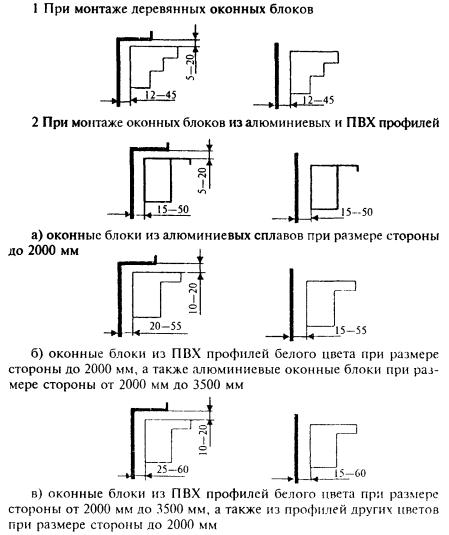 TO JOINTS OF WINDOW ASSEMBLIES General specifications Дата введения 2003-03-01 1 Область примененияНастоящий стандарт распространяется на монтажные швы узлов примыканий оконных и наружных дверных блоков (далее - оконных блоков) к стеновым проемам. Стандарт применяют при проектировании, разработке конструкторской и технологической документации, а также производстве работ при строительстве, реконструкции и ремонте зданий и сооружений различного назначения с учетом требований действующих строительных норм и правил. Требования стандарта также применяют при замене оконных блоков в эксплуатируемых помещениях. Требования настоящего стандарта могут быть использованы при проектировании монтажных швов узлов примыканий витражных и других фасадных конструкций, а также монтажных швов сопряжений конструкций между собой. Стандарт не распространяется на монтажные швы узлов примыканий оконных блоков специального назначения (например, противопожарных, взрывозащитных и др.), а также изделий, предназначенных для применения в неотапливаемых помещениях. Стандарт может быть использован для целей сертификации. 2 Нормативные ссылкиВ настоящем стандарте приведены ссылки на следующие стандарты: ГОСТ 166-89 Штангенциркули. Технические условия ГОСТ 427-75 Линейки измерительные металлические. Технические условия ГОСТ 2678-94 Материалы рулонные кровельные и гидроизоляционные. Методы испытаний ГОСТ 7076-99 Материалы и изделия строительные. Метод определения теплопроводности и термического сопротивления при стационарном тепловом режиме ГОСТ 7502-98 Рулетки измерительные металлические. Технические условия ГОСТ 7912-74 Резина. Метод определения температурного предела хрупкости ГОСТ 10174-90 Прокладки уплотняющие пенополиуретановые для окон и дверей. Технические условия ГОСТ 17177-94 Материалы и изделия строительные теплоизоляционные. Методы испытаний ГОСТ 23166-99 Блоки оконные. Общие технические условия ГОСТ 24700-99 Блоки оконные деревянные со стеклопакетами. Технические условия ГОСТ 25898-83 Материалы и изделия строительные. Методы определения сопротивления паропроницанию ГОСТ 26433.0-85 Система обеспечения точности геометрических параметров в строительстве. Правила выполнения измерений. Общие положения ГОСТ 26433.1-89 Система обеспечения точности геометрических параметров в строительстве. Правила выполнения измерений. Элементы заводского изготовления ГОСТ 26433.2-94 Система обеспечения точности геометрических параметров в строительстве. Правила выполнения измерений параметров зданий и сооружений ГОСТ 26589-94 Материалы кровельные и гидроизоляционные. Методы испытаний ГОСТ 26602.1-99 Блоки оконные и дверные. Методы определения сопротивления теплопередаче ГОСТ 26602.2-99 Блоки оконные и дверные. Методы определения воздухо- и водопроницаемости ГОСТ 26602.3-99 Блоки оконные и дверные. Метод определения звукоизоляции ГОСТ 30673-99 Профили поливинилхлоридные для оконных и дверных блоков. Технические условия 3 Термины и определенияВ настоящем стандарте использованы следующие термины и определения: Узел примыкания оконного блока к стеновому проему - конструктивная система, обеспечивающая сопряжение стенового оконного проема (в том числе элементов наружного и внутреннего откосов) с коробкой оконного блока, включающая в себя монтажный шов, подоконную доску, слив, а также облицовочные и крепежные детали. Мон