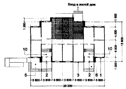 Примечание: При габаритах зала ОФП 18×9 м его следует принимать высотой 3,9 м и размещать в пристройке к жилому зданию. Д.15. Дошкольные учреждения (частные) 15.1 Детский сад на 1 разновозрастную группу (10 мест)