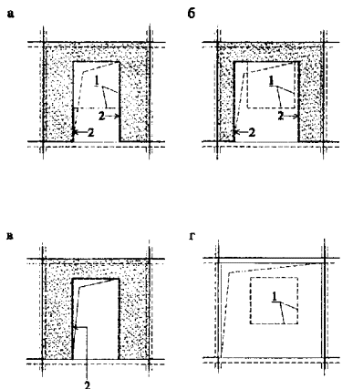 2 Устройство проема для входных дверей путем вырезки подоконной части панели и расширения существующего оконного проема. 3 Устройство проема для витража, глухого или с дверью путей полного демонтажа панели. 4 Крыльцо открытое 5 Крыльцо открытое с пандусом 8 Встроенный тамбур 11 Витрина навесная Рис. 4.4. Примеры устройства входов в помещения малых предприятий, встраиваемых в 1-й этаж жилой блок-секции Пд-4 (к п. 4.14).