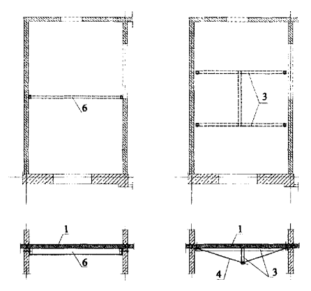 1 Устройства проема для входных дверей путем вырежи подоконной части панели. 2 Устройство проема для входных дверей путем вырезки подоконной части панели и расширения существующего оконного проема. 3 Устройство проема для витража, глухого или с дверью путем полного демонтажа панели. 4 Крыльцо открытое 5 Крыльцо открытое с пандусом 6 Встроенный тамбур 10 Встроенный тамбур на отметке ниже уровня первого этажа Рис. 4.3. Примеры устройства входов в помещения малых предприятий, встраиваемых в 1-й этаж жилой секции КТЖС-1,2 (типовой проект КОПЭ) (к п. 4.14).