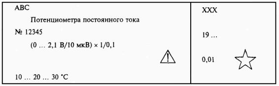 Маркировка содержит следующую информацию: - потенциометр постоянного тока, производства ABC, типа XXX, с порядковым номером 12345, год выпуска 19...; - класс точности 0,01; - при значении «´ 1» множителя диапазон измерения - от 0 до 2,1 В, разрешающая способность 10 мкВ; - при значении «´ 0,1» множителя диапазон измерения от 0 до 0,21 В, разрешающая способность 1 мкВ; - нормальное значение температуры 20 °С; - рабочая область температур от 10 до 30 °С; - испытательное напряжение 0,5 кВ. ПРИЛОЖЕНИЕ 3. (Введено дополнительно, Изм. № 1). СОДЕРЖАНИЕ