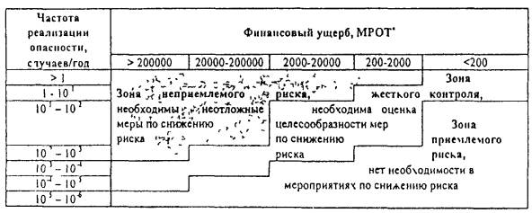 Матрица для определения опасности территорий (зон) по критерию «частота реализации - финансовый ущерб»