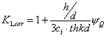 где К1,cor - поправочный коэффициент, учитывающий влияние возвышения свободной поверхности по контуру преграды при d/l £ <0,175 и определяемый по формуле: