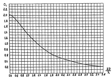 yм - коэффициент момента определяется по графику на черт. 3 кривая 2. При d/l > 0,175 следует принимать K2,cor = 1. 2.3.6. Максимальная вертикальная сила от воздействия волн Qz.max, кН, на сплошное дно вертикальной цилиндрической преграды, расположенной на каменной или крупногалечниковой постели, определяется по формуле