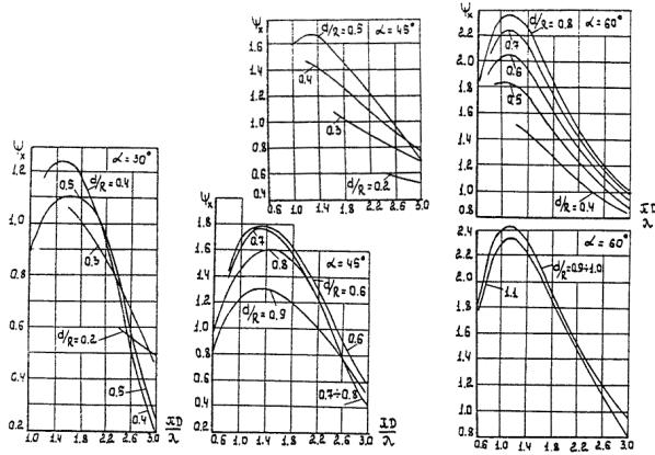 где yx - коэффициент горизонтальной силы, определяемый по графикам на черт. 12; R = D/2.