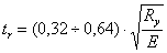 n - показатель степени деформационного упрочнения при степенной аппроксимации диаграммы деформирования s = Aen. Для сталей с Ry < 400 МПа n принимается равным 0,3.
