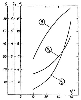 где jV - коэффициент максимальной донной скорости, определяемый по графикам на черт. 7. Максимальная донная скорость, определяемая через коэффициент jV по черт. 7, кривая 1, возникает у точек контура цилиндрической