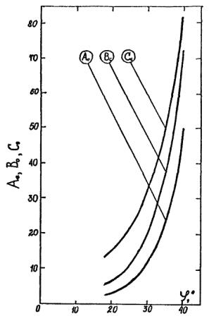 где z ³ 0 - расстояние по вертикали от расчетного уровня воды до рассматриваемой точки (см. черт. 1а); c - коэффициент распределения давления по периметру цилиндрической преграды, определяемый по графику на черт. 6). Черт. 4.