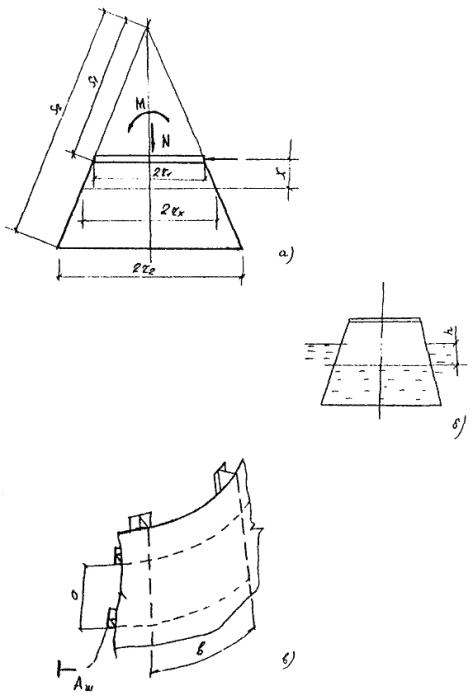 опорной части на уровне действия льда «с» и «d» следует поперечный размер (или