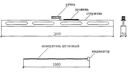 4.5. Измерение параметров внешней колеи выполняют в намеченном створе, прикладывая рейку к верхней грани подставочных стаканов в поперечном направлении.