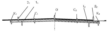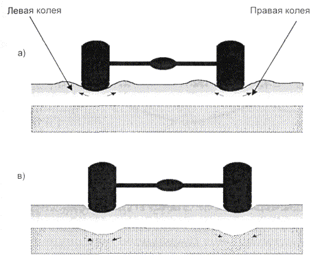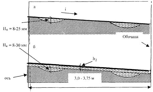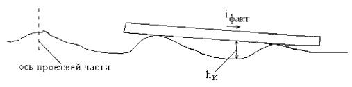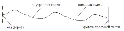5.1.2. Рассчитывают суммарную неровность поверхности проезжей части в каждом створе по внутренней колее (рис. 7) по формулам: