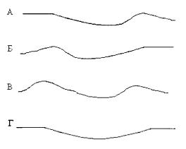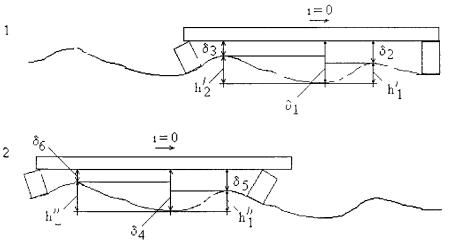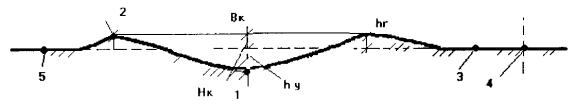 5.1.1. Рассчитывают суммарную неровность поверхности проезжей части в каждом створе по внешней колее (рис. 7) по формулам: