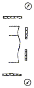 4.5.1. Подставочный стакан постоянной высоты устанавливают на кромку проезжей части, кромку краевой полосы или обочину. Подставочный стакан переменной высоты устанавливают в одном створе с подставочным стаканом постоянной высоты. Ширина зазора под укладываемой рейкой, ограниченная подставочными стаканами, должна перекрывать считываемые параметры внешней колеи (рис. 7.1.).