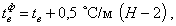 где tв - расчетная температура воздуха в рабочей зоне помещения в холодный период года (приложение 2); Н - высота помещения, м; tн - средняя температура наиболее холодной пятидневки (принимается по приложению 3); tр - температура точки росы, принимаемая в зависимости от относительной