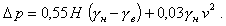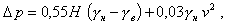 где Gн - нормативная воздухопроницаемость фонаря, кг/(м2·ч), принимается равной 10,0 кг/(м2·ч); K = 10 Па - разность давлений воздуха, при которой определяется сопротивление воздухопроницанию Ru; Dр - разность давлений воздуха на наружной и внутренней поверхности фонаря, Па, определяемая по формуле где Н - высота от поверхности пола до низа фонаря, м; γн и γв - удельный вес наружного и внутреннего воздуха, Н/м3, определяемый по формулам, м: