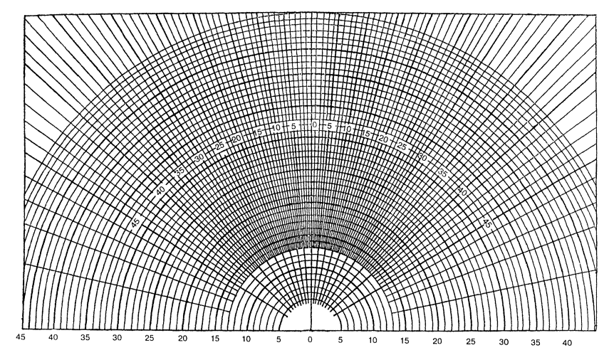 График I приложения 9 накладываем на чертеж поперечного разреза помещения (см. рис. 2 данного приложения). Центр графика «0» совмещаем с расчетной точкой, а нижнюю линию - со следом (у.р.п.). Количество лучей, проходящих от небосвода в расчетную точку, составляет n1 = 3.