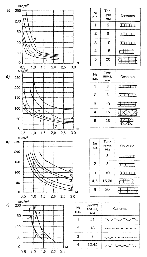 где w0 - нормативное значение ветрового давления, принимается по 6.4 СНиП 2.01.07-85*, кПа; k - коэффициент, учитывающий изменение ветрового давления по высоте (принимаемого по 6.5 СНиП 2.01.07-85*); с - аэродинамический коэффициент (принимается по 6.6 СНиП 2.01.07-85*). 3.8.9. Значения допустимых относительных прогибов несущих элементов фонарей следует принимать не более при опирании на них: листового стекла - 1/200; стеклопакетов - 1/300; элементов из полимерных материалов - 1/150. Таблица 3.10