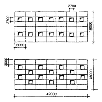 Рис. 1. Схемы возможного размещения зенитных фонарей в покрытии