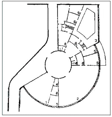 Домик для игр в воде и с песком 1 - плескательная ванна (0,3 м глубиной); 2 - фонтан; 3 - песчаная площадка; 4 - маты разной формы для лазания; 5 - свободная площадка для передвижения; 6 - кладовая для инвентаря; 7 - проекторная; 8 - белая стена для проекций фильмов и слайдов Основные функциональные блокиСОСТАВ ОСНОВНЫХ И ВСПОМОГАТЕЛЬНЫХ ПОМЕЩЕНИЙ · Состав основных и вспомогательных помещений физкультурно-оздоровительных сооружений определяется исходя из функционального назначения объекта, предполагаемого контингента пользователей и требований методического и медико-гигиенического характера. Он может варьироваться в соответствии с конкретными условиями. · Предпочтительно, чтобы при проектировании физкультурно-оздоровительных сооружений предусматривался комплексный состав основных помещений. Минимальный набор составляют плавательный бассейн и зал для общей физической подготовки, который оснащается различным оборудованием для игр и физкультурных занятий. Размеры ванн и залов определяются в соответствии с конкретными ситуациями. · Из вспомогательных помещений, помимо блоков обслуживания залов и ванн бассейна, рекомендуется предусматривать помещения для отдыха занимающихся и медико-восстановительный центр, который может состоять из одной камеры сухого жара с массажной. · Расширение набора основных и вспомогательных помещений происходит за счет наращивания количества залов и (или) ванн бассейна с соответствующим дроблением функций для того или иного вида занятий, а также включения в комплекс помещений досугового, реабилитационного или иного назначения. СОСТАВ И ВНУТРЕННИЕ СВЯЗИ · Залы и помещения, предназначенные для физкультурно-оздоровительных занятий инвалидов, могут размещаться в составе спортивных корпусов, быть встроенными в здания другого назначения или пристроенными к ним, а также размещаться в отдельно стоящих зданиях. · Особенности инвалидов различных категорий влияют на функциональный состав и связи внутри здания. Так, необходимо предусматривать кратчайшие пути передвижения от вспомогательных к основным помещениям. Недопустимо их размещение на разных отметках. В составе раздевальных должны предусматриваться специальные помещения для переодевания инвалидов с помощниками. Во вспомогательных и основных помещениях выделяются специальные зоны или отдельные помещения для хранения вспомогательных средств передвижения. · Максимально приближенным к местам занятий должно быть помещение первой медицинской помощи. Помимо этого рекомендуется предусматривать блок медико-восстановительных помещений, в состав которого должны входить минимально возможный набор медицинских кабинетов и процедурных, а также как непременный элемент - сауна в блоке с массажной. · Связи блоков вспомогательных помещений, размещаемых отдельно от открытых плоскостных сооружений, также должны быть кратчайшими. Места занятий на открытых сооружениях должны размещаться компактно, иметь прямые связи между собой, при этом должна быть обеспечена их изоляция в соответствии с функциональными требованиями. ЗАЛЫ · Основные габариты залов для физкультурно-оздоровительных занятий инвалидов складываются из размеров площадок для игр и занятий, необходимых зон безопасности и площади для размещения вспомогательного оборудования для п
