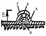 Ремонт незначительных дефектов на верхних поясах стенки, кровли и других элементах может осуществляться путем наложения металлических заплат на клею на основе эпоксидной смолы ЭП-0010. Жизнеспособность клеевых составов при температуре 20 °С составляет 45-60 мин. 9.26. Отдельные мелкие трещины, отверстия и отпотины на стенке и кровле допускается ликвидировать эпоксидным составом без применения армирующего материала. При этом дефектное место и поверхность вокруг него должны быть покрыты ровным слоем клея. Толщина клеевого состава должна быть около 0,15 мм. 9.27. Крупные дефектные места ремонтируют эпоксидными составами с укладкой не менее двух слоев армирующей ткани-стеклоткани, бязи и др. Зачищенное место покрывают слоем клея, укладывают армирующий слой и покрывают его слоем клея, затем укладывают следующий армирующий слой, который также покрывают слоем клея. Каждый армирующий слой должен перекрывать края дефектного листа и ранее уложенного армирующего слоя на 20-30 мм. На верхний армирующий слой наносят слой эпоксидного клеевого состава с последующим лакокрасочным покрытием. 9.28. Отдельные раковины, свищи и другие дефекты предварительно шпатлюют основным покрытием следующего состава (мас.ч.): шпатлевка ЭП-0010-100; отвердитель - гексаметилендиамин - 8,5; наполнитель - пудра алюминиевая - 100. Приготавливать состав рекомендуется следующим образом: в шпатлевку ЭП-0010 добавляют отвердитель и тщательно перемешивают до образования однородной массы, затем добавляют сухой наполнитель до образования тестообразной массы, удобной для нанесения шпателем. Жизнеспособность состава - 1-1,5 ч. 9.29. На загрунтованную поверхность наносят разливом и разравнивают слой покрывного состава толщиной до 2 мм, на который накладывают армирующий слой, и укатывают перфорированным металлическим катком для пропитки слоя и удаления воздушных пузырей. Следующие армирующие слои накладывают после отвердения предыдущих слоев (не ранее чем через 24 ч) при температуре 18 °С в указанной последовательности. 9.30. На верхний армирующий слой наносят краскопультом лакокрасочное покрытие (грунтовка по ГОСТ 9070-75). 9.31. Контроль качества осуществляют визуальном осмотром и с помощью электрического дефектоскопа ЭД-4. 9.32. Испытание и ввод в эксплуатацию отремонтированного бака должны осуществлять не ранее семи суток после окончания ремонта. 9.33. Контроль качества сборочных и сварочных работ при ремонте баков проводится в соответствии с требованиями СНиП III-18-75 [10], СНиП 3.03.01-87 [13]. 9.34. Контроль выполненных работ осуществляют: а) внешним осмотром мест и элементов исправления в процессе сборки, сварки баков с измерением сварных швов; б) испытание швов на герметичность; в) проверкой сварных соединений рентгено- и гамма-просвечиванием или другими физическими методами; г) окончательным испытанием бака на прочность, устойчивость и герметичность. Сварные соединения по внешнему виду должны удовлетворять требованиям ГОСТ 8713-79, ГОСТ 5264-80, СНиП III-18-75 [10], СНиП 3.03.01-87 [13]. 9.36. Все сварные соединения, выполненные в период ремонтных работ, подвергаются 100 %-ному контролю на герметичность вакуум-методом или керосиновой пробой. 9.37. Сварные стыковые и нахлесточные соединения стенки, сваренные сплошным швом с наружной стороны и прерывистым с внутренней, проверяют на герметичность путем обильного смачивания