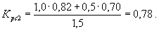 Пример 2. Общая ширина обочины 1,5 м. Из них ширина краевой полосы из слоя гравия 1 м и ширина полосы, укрепленной засевом трав - 0,5 м. Для общей ширины обочины 1,5 м по табл. 5.9 принимаем при укреплении слоем гравия Крс2 = 0,82; при укреплении засевом трав Крс2 = 0,70. Средневзвешенная величина будет: