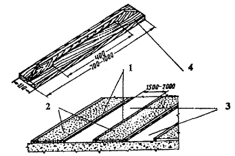 2.3. При температуре наружного воздуха ниже -7 °С (в зимнее время) компоненты мастики необходимо подогревать до 20...60 °С для облегчения перемешивания и нанесения. После отверждения мастика Битурэл превращается в монолитную эластичную резиноподобную пленку, сохраняющую заданные свойства в диапазоне температур от +120 °С до -50 °С. Мастика обладает высокой химической стойкостью, а также стойкостью к атмосферным воздействиям. Важным техническим преимуществом ее является возможность нанесения на влажное основание. Расход мастики Битурэл составляет в среднем 3,5 кг/м2. 2.4. Толщина покрытия должна быть 2-3 мм. При необходимости разжижения мастики Битурэл используют разбавитель (растворитель) - бензин, соляровое масло, уайт-спирит в количестве не более 5 % по массе при ручном нанесении и не более 15 % - при механизированном нанесении. 2.5. Цементно-песчаный раствор стяжки укладывать сначала на наиболее удаленные участки, постепенно отступая к месту подачи раствора на крышу. Для разравнивания раствора используют правила или виброрейки. Полосы заполняют раствором так, чтобы после извлечения маячных реек образовались участки для заполнения раствором (Рис. 1). Швы выравнивающих стяжек и возможные трещины следует заполнять мастикой Битурэл. Затем полосу основания вдоль шва на ширину 50-60 мм в каждую сторону покрывают антиадгезионными составами, в качестве которых можно использовать узкие (до 150 мм) полосы рулонного материала, полиэтиленовой пленки для ослабления или предотвращения склеивания мастики Битурэл с основанием вдоль шва. 2.6. Цементно-песчаная стяжка должна соответствовать требованиям нормативных документов. В качестве связующего для стяжки рекомендуется использовать напрягающий цемент НЦ-20 или асфальтобетон с 5 % содержанием резиновой крошки для повышения трещиностойкости. Не допускается использовать для основания стяжки на известковых вяжущих или шлакопортландцементах. Показатели свойств цементно-песчаного раствора для устройства стяжки приведены в таблице 2. Таблица 2 Требования к основаниям под кровлю