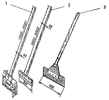 1) Температурно-усадочные швы выполняются над швами в несущих плитах. 2.7. Асфальтобетонные стяжки рекомендуется выполнять в холодное время года, в том числе зимой при уклонах крыш до 20 %. Размер карт таких стяжек 4×4 м. 2.8. До устройства кровельного ковра должны быть выполнены следующие работы: проверены уклоны поверхности основания от водораздела до водосточных воронок, не должно быть обратных уклонов, поверхность должна быть ровной, просветы между основанием и контрольной трехметровой рейкой не должны превышать 5 мм вдоль уклона и 10 мм поперек уклона; поверхность основания должна быть очищена от мусора и пыли; по всей поверхности должны быть установлены и закреплены патрубки, в которые вставляют чаши воронок. 2.9. Поверхность основания под кровельное покрытие из Битурэла должна быть ровной, без вздутий и складок с плавными переходами в местах сопряжений с выступающими над крышей конструкциями. По стяжке допускаются трещины шириной до 0,3 мм. При большей ширине на трещину следует нанести слой мастики. 2.10. Скопившуюся на кровле воду следует удалить, используя машину типа СО-222 (Рис. 2). 2.11. Обеспыливание стяжки выполняют струей сжатого воздуха от компрессора. 2.12. Для подсушки поверхностей незначительных объемов можно пользоваться агрегатами инфракрасного излучения. Приготовление мастики Битурэл2.13. Приготовление мастики Битурэл должно проводиться на открытой площадке или в помещении с интенсивным вентилированием при температуре не ниже 5 °С. При низких температурах окружающего воздуха происходит загустение мастики, затрудняющее ее приготовление и нанесение. Поэтому в зимнее время при температуре ниже -7 °С рекомендуется предварительно подогреть компоненты мастики до температуры 20...60 °С (в зависимости от температуры воздуха). При приготовлении мастики Битурэл необходимо соблюдать требования ГОСТ 12.1.005-88 «Санитарные правила организации технологических процессов и гигиенических требований к производственному оборудованию» № 1042-73, утвержденных Минздравом. 2.14. Смешивание двух компонентов мастики в заданном соотношении (30 масс. ч. компонента 1 на 70 масс. ч. компонента 2) осуществляется на строительной площадке непосредственно перед употреблением. Смешивание осуществляется в любом смесительном оборудовании или вручную с использованием в качестве емкости любой пригодной тары. Продолжительность перемешивания смеси составляет 3-5 минут. 2.15. Простейшим механизмом для смешивания компонентов мастики может служить электрическая или пневматическая дрель любого типа со скоростью вращения до 300 об/мин, снабженная насадкой с лопастями. Схема приспособления приведена на Рис. 3. 2.16. Для обеспечения требуемого качества приготовленной смеси необходимо соблюдать следующие условия: точность дозирования компонентов при смешивании (30:70 масс. ч.) не должна превышать 3 % от массы смеси; тщательность перемешивания смеси должна обеспечить однородную желеобразную консистенцию; осторожность в применении разбавителей (бензин, соляровое масло и др.) для разжижения мастики. Категорически запрещается добавлять разбавители в мастику, наносимую на влажное основание. При нанесении мастики на сухое основание допускается добавление разбавителей (растворителей) не более 5 % при ручном нанесении и не более 15 % - при механизированном. Нанесение мастики 
