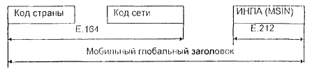 4.2.6 Поле параметра «Данные» содержит данные прикладной подсистемы подвижной связи. 4.3 Правила адресации и кодирование адресных параметров сообщений подсистемы управления соединением сигнализации, содержащих данные прикладной подсистемы подвижной связи 4.3.1 Для адресации сообщений ПУСС используются параметры: - «Адрес вызываемой стороны», - «Адрес вызывающей стороны». 4.3.2 Для адресации сообщений подсистемы управления соединением сигнализации, содержащих данные прикладной подсистемы подвижной связи, при передаче информации сигнализации внутри СПС-ОП используются ресурсы подсистемы передачи сообщений - код пункта сигнализации и ресурсы подсистемы управления соединением сигнализации - глобальный заголовок. 4.3.3 При передаче информации сигнализации внутри сети подвижной связи параметры адреса должны кодироваться с учетом следующих ограничений: 4.3.3.1 Адрес вызываемой стороны - индикатор номера подсистемы = 1 (номера подсистем ПППС (MAP) должны всегда включаться); - глобальный заголовок - может включаться. 4.3.3.2 Адрес вызывающей стороны - индикатор номера подсистемы = 1 (номера подсистем ПППС (MAP) всегда включаются); - глобальный заголовок или код пункта сигнализации - могут включаться; если нет ни одного из этих параметров, используется адрес подсистемы передачи сообщении - код исходящего пункта 4.3.4 При взаимодействии с другими сетями используется адресация только по глобальному заголовку. 4.3.5 При взаимодействии с другими сетями параметры адреса должны кодироваться с учетом следующих ограничений: 4.3.5.1 Адрес вызываемой стороны Поле адресного индикатора: - индикатор номера подсистемы = 1 (номера подсистем ПППС (MAP) должны всегда включаться); - индикатор кода пункта = 0; - индикатор глобального заголовка = 0100 (глобальный заголовок включает тип трансляции, план нумерации, схему кодирования и тип индикатора адреса); - индикатор маршрутизации = 0 (маршрутизация по глобальному заголовку); Поле адреса: - тип трансляции = 00000000 (не используется); - план нумерации = 0001 (с учетом примечания 1) или 0111 (с учетом примечания 2); Примечания: 1 Адрес представлен международным номером 7 DEFabxxxxx, где 7 - код страны, DEF - код негеографической зоны нумерации (код сети подвижной связи). 2 Адрес представлен кодом переменной длины по основанию 10 (максимальная длина 15 разрядов). Структура адреса представлена на рисунке 1. Рисунок 1 - Структура мобильного глобального заголовка - схема кодирования адресной информации глобального заголовка: № бита 4321 0000 - схема кодирования не известна 0001 - адресная информация кодируется двоично-десятичным кодом, количество адресных сигналов - нечетное 0010 - адресная информация кодируется двоично-десятичным кодом, количество адресных сигналов - четное 0011 - национальная специфика