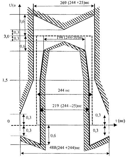 ЦИФРОВЫХ АВТОМАТИЧЕСКИХ ТЕЛЕФОННЫХ Параметры стыков для скорости передачи 2048 кбит/с, методика измерений Дата введения 01. 08. 2001 г. 1 Область примененияСтандарт распространяется на цифровые автоматические телефонные станции и цифровые системы передачи. Стандарт устанавливает требования к параметрам сопряжения цифровых автоматических телефонных станций и цифровых систем передачи в направлении других станций - параметры стыка для скорости передачи 2048 кбит/с (стык А) и параметры стыка синхронизации 2048 кГц (стык Y), а также методику измерения этих параметров. Стандарт предназначен для разработчиков, изготовителей оборудования цифровых АТС, сотрудников сертификационных испытательных лабораторий и эксплуатационного персонала предприятий связи. Настоящий стандарт не распространяется на требования к стыку Y в части максимальной ошибки временного интервала (МОВИ) и девиации временного интервала (ДВИ), так как они могут быть различными для соответствующих условий работы АТС и должны определяться специальными документами. 2 Нормативные ссылкиВ настоящем стандарте использованы ссылки на следующие стандарты: ГОСТ 22670-77 - Сеть связи цифровая интегральная. Термины и определения ГОСТ 26886-86 - Стыки цифровых каналов передачи и групповых трактов первичной сети EACC. Основные параметры ГОСТ 27285-87 - Параметры сопряжения коммутационных систем с цифровыми системами передачи ОСТ 45.68-96 - Классификация и условные обозначения стыков (интерфейсов) цифровых станций местных телефонных сетей ОСТ 45.90-96 - Стыки цифровых каналов и групповых трактов первичной сети взаимосвязанной сети связи Российской федерации. Методы испытания основных параметров ОСТ 45.134-99 - Приборы для измерения дрожания и дрейфа фазы в цифровых сигналах электросвязи 3 Определения, обозначения и сокращения3.1 Определения В настоящем стандарте применяются следующие термины и определения: 3.1.1 Скорость передачи символов (цифрового канала электросвязи) - число символов цифрового сигнала электросвязи, передаваемых в единицу времени (по ГОСТ 2670). 3.1.2 Цифровой сигнал электросвязи - сигнал электросвязи, у которого каждый из представляющих параметров описывается функцией дискретного времени и конечным множеством возможных значений (по ГОСТ 22670). Примечание - Элементы структуры сети связи, используемые дня операции только с цифровыми сигналами, приобретают соответствующие названия, например, цифровая линия передачи сигнала электросвязи, цифровой тракт электросвязи и т.д. 3.1.3 Синхронные цифровые сигналы электросвязи - цифровые сигналы электросвязи, у которых значащие моменты находятся в требуемом постоянном фазовом соответствии (по ГОСТ 22670). 3.1.4 Плезиохронные цифровые сигналы электросвязи - цифровые сигналы электросвязи, у которых значащие моменты появляются с номинально одинаковой скоростью, причем любые изменения скорости ограничены установленными пределами (по ГОСТ 22670). 3.1.5 Цикл временного объединения цифровых сигналов электросвязи (цикл) - совокупность примыкающих друг к другу интервалов времени, отведенных для передачи цифровых сигналов электросвязи, поступающих от различных источников, в которой каждому из этих сигналов выделен определенный интервал времени, положение которого может быть определено однозначно (по ГОСТ 22670). 3.1.6 Канальный интервал в цикле временного объе