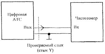 "Да" означает, что действие должно быть предпринято. 6.3 Методика измерений параметров стыка синхронизации 2048 кГц (стыка Y) цифровой АТС6.3.1 Измерение частоты сигнала на выходе синхронизации цифровой АТС (стык Y) по 5.2.1 Измерение проводится по схеме, приведенной на рисунке 13. Рисунок 13 Измерение частоты проводят с помощью электронно-счетного частотомера. Измеренное значение должно соответствовать значению, приведенному в 5.2.1. 6.3.2 Измерение размаха фазового дрожания сигнала на выходе синхронизации цифровой АТС (стык Y) по 5.2.4 Измерение размаха дрожания фазы сигнала на выходе цифровой АТС на стыке Y проводится измерителем ошибок и дрожания по схеме, приведенной на рисунке 10. Фазовое дрожание сигнала на выходе ГИС отсутствует. Затухание на выходе имитатора кабеля - 0 дБ. Измеритель ошибок и дрожания включен в режим с использованием полосового фильтра с граничными частотами 20 Гц и 100 кГц и спадом амплитудно-частотной характеристики 20 дБ на декаду. Выход цифровой АТС по стыку Y подключают к симметричному входу измерителя дрожания и ошибок. Результат измерения должен соответствовать значению, приведенному в 5.2.4. 6.3.3 Измерение параметров формы импульсом на выходе цифровой АТС по стыку Y Измерение параметров формы импульсов на выходе цифровой АТС по стыку Y проводят по схеме рисунка 6 на сопротивлении нагрузки равном (120 ± 1,2) Ом. Измеренная форма импульса на выходе цифровой АТС по проверяемому стыку должна соответствовать шаблону, приведенному на рисунке 4. 6.3.4 Измерение затухания несогласованности на входе синхронизации цифровой АТС (стыкY) относительно сопротивления 120 Ом по 5.2.6 Измерение затухания несогласованности относительно входного сопротивления 120 Ом проводится по схеме, приведенной на рисунке 9 на частоте 2048 кГц. Результат измерения должен соответствовать значению, приведенному в 5.2.6. Приложение А(справочное) Метрологические характеристики стыка цифровых автоматических телефонных станций и цифровых систем передачи и испытательного оборудованияА.1 Метрологические характеристики стыка цифровых АТС и цифровых систем передачи, допустимые отклонения и рекомендуемые средства измерений приведены в таблице А1. Таблица А1
