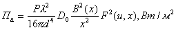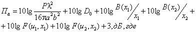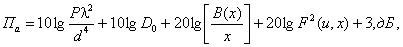 Находится значение функции 6. Вычисляется значение функции 20 lg F(u, x), дБ (по огибающей). 7. По формуле (2.8) рассчитывается значение составляющей Па: 8. Определяется: Dобл, дБ = 10 lg Dобл, (2.22) 9. По формуле (2.9) находится значение составляющей Побл: 10. Значение суммарной ППЭ рассчитывается по формуле: Методика