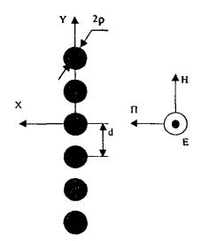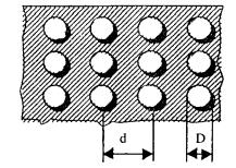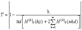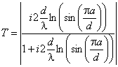 Рис. 6.3. К расчету коэффициента прохождения через поверхность со щелями. Для поверхности с круглыми отверстиями (рис. 6.4) и расстоянии между центрами отверстий d < (0,3...0,4)λ формула для расчета коэффициента прохождения имеет вид: