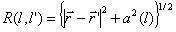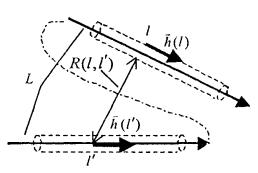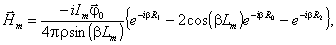 a(l) - радиус проводника в точке l; I(l’) - искомая токовая функция. Рис. 7.1. К решению интегрального уравнения. Искомая токовая функция I(l’) при выбранном базисе разложения определяется как линейная комбинация: М - число базисных функций, равное числу сегментов; Im - коэффициент при m-ой базисной функции; Вm(l’) - m-ая кусочно-синусоидальная базисная функция. Представление токовой функции в виде (7.3) сводит интегральное уравнение (7.2) к системе М линейных алгебраических уравнений относительно Im: k = 1, 2,...M, N - число входов (активных вибраторов) антенны; I(вх)i - заданные входные токи. Коэффициенты системы (7.4) рассчитываются по формуле: lk и lm - средние точки соответственно т-го и k-го сегментов; Lm - половина длины т-го сегмента; R1, R0 и R2 - расстояния до средней точки k-го сегмента соответственно от начальной, средней и конечной точек m-го сегмента;
