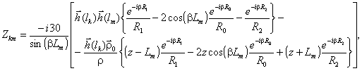 R1, R0 и R2 - расстояния между точкой наблюдения и соответственно начальной, средней и конечной точками m-го сегмента;