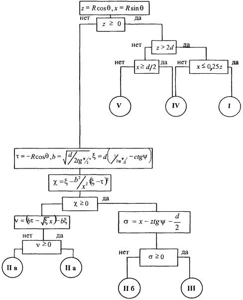 θM = arccos {[ρM · cos φM · cos α - (HA - HM) sin α] / RM}; θM = arccos {[3 · cos 0° · cos 10° - (7 - 7) sin 10°] / 3} = 10° 2. По алгоритму рис. П1.4 устанавливается принадлежность точки М к области V. 3. Находится граничное расстояние Rгр = 2d2 / λ = 2 · 72/0,05 = 1960 м 4. Определяется координата х в точке М: х = RM / Rгр = 3 / 1960 = 0,00153 5.
