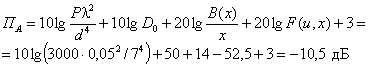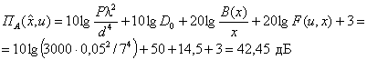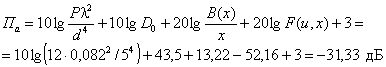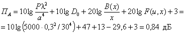 Вычисляется апертурная составляющая ПА( - по графику рис. П1.2 определяется функция 20 lg [B(x) / x] = 14,5 дБ; - F(76,4; 0,00178) = 0; -