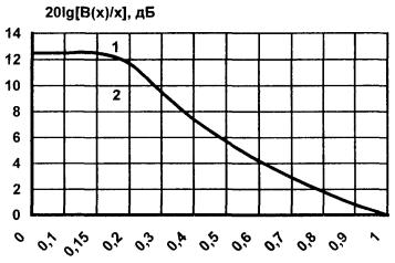 Перевод размерности ППЭ Вт/м2 в мкВт/см2 осуществляется в (2.7) умножением на 100. Переход от абсолютных значений величины ППЭ к относительным (децибелам относительно 1 мкВт/см2) осуществляется по формуле: В(х) - функция, учитывающая изменение КНД в зависимости от относительного расстояния; F(u, x) - нормированная характеристика направленности апертуры в обобщенных координатах и, х. С учетом принятых допущений выражение (2.4) при переходе к относительным значениям (децибелам относительно 1 мкВт/см2) приводится к виду: Аналитическое выражение функции В(х)/х для круглой апертуры с амплитудным распределением типа (2.2) имеет вид: