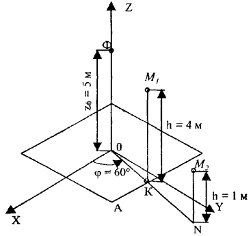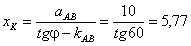 2. Расчет координат точки К. В соответствии с выбранными параметрами задачи при φ = 60° для расчета используются формулы (8.6).