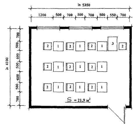 ПРИЛОЖЕНИЯЭКСПЛИКАЦИЯ ОБОРУДОВАНИЯ 1. Стол ученический 2. Стул 3. Стол воспитателя Рис. П.1. Комната приготовления уроков.