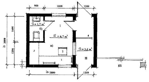 Помещения медицинского изолятора. 5.90. Рекомендуемый состав и площади помещений медицинского изолятора приведены в таблице 5.7. 5.91. Вместимость изолятора следует предусматривать из расчета 10-15 % от числа воспитанников. 5.92. Помещения изолятора соединяется с остальными помещениями ЗОШ через тамбур-шлюз, в котором следует размещать умывальник и вешалку для смены халатов. 5.93. В состав помещений изолятора следует включать изоляционные палаты на 1 и 3 чел. 5.94. Между изоляционными палатами и коридором следует предусматривать глухие (не открывающиеся) окна для наблюдения за детьми. 5.95. Для организации питания детей, находящихся в изоляторе, в состав его помещений следует включать буфетную с моечной посуды. Оборудование буфетной рассчитано на подогрев готовой пищи. 5.96. Вход в санитарные узлы в изоляторе следует проектировать из коридора для возможного наблюдения за воспитанниками. Учитывая возможность возникновения различных инфекционных заболеваний и трудности госпитализации воспитанников учреждения, в состав помещений изолятора следует включать 2 санузла и 2 туалетные. Рекомендуемое оборудование санитарного узла: унитаз, умывальник; туалетной: унитаз, умывальник, ванна. В ЗОШ для мальчиков в состав оборудования санитарного узла следует включать писсуар. В ЗОШ для девочек - бидэ. Таблица 5.7. Рекомендуемый состав и площади помещений медицинского изолятора.