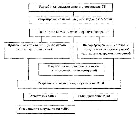 4.2 Разработку, согласование и утверждение технического задания (ТЗ) на разработку МВИ осуществляют в случаях, когда предполагается регламентировать МВИ в отдельном документе. Типичные требования, указываемые в ТЗ на МВИ, приведены в ГОСТ Р 8.563 (п. 5.1). В их числе следующие: - назначение МВИ, из которого можно установить возможность использования МВИ в сферах распространения ГМКН; - пределы измерений; - пределы допускаемой погрешности измерений; - характеристики объекта измерений (например, температура жидкости, давление или уровень которой измеряется); - условия измерений (температура, влажность, давление окружающего воздуха, характеристики источника питания средств измерений, наличие внешних электромагнитных полей, вибрация в местах установки средств измерений и др.); - вид индикации и формы регистрации результатов измерений; - требования к автоматизации измерительных процедур; - требования к обеспечению безопасности выполнения работ; - другие требования в соответствии со спецификой МВИ. Если для разработки МВИ имеются исходные данные (см. п. 4.3 и настоящий п.), то ТЗ на разработку МВИ не требуется. 4.2.1 Если МВИ будет регламентирована в виде раздела (части) общего документа, то в ТЗ на разработку этого документа целесообразно указать требования к точности измерений либо требования к достоверности измерительного контроля или погрешности результатов испытаний, исходя из которых известными способами могут быть установлены пределы допускаемых значений характеристик погрешности измерений. 4.3 Исходные данные для разработки Основные исходные данные указываются в ТЗ на разработку. Если ТЗ по каким-либо причинам отсутствует, то для разработки МВИ необходимы исходные данные, приведенные в п. 4.2. В дополнение к этому в числе исходных данных могут потребоваться следующие сведения: - о наличии средств измерений, в том числе утвержденных типов; - о наличии других технических средств, в том числе средств вычислительной техники, которые могут быть использованы при измерениях; - о наличии эталонов, стандартных образцов состава и свойств веществ и материалов, аттестованных смесей для поверки (калибровки) средств измерений, которые могут быть использованы в МВИ; - о квалификации операторов, выполняющих измерения: - другие данные в соответствии со спецификой МВИ. Разработчикам МВИ целесообразно иметь нормативные и рекомендательные документы, приведенные в настоящей рекомендации, а также документы и справочные материалы, исходя из специфики измеряемой величины, объекта контроля и управления и других исходных данных. 4.3.1 При разработке МВИ одним из основных исходных требований является требование к точности измерений. В ряде нормативных документов приводятся требования к точности измерений в наиболее распространенных технологических процессах. Так, в машиностроении действует ГОСТ 8.051-81 «ГСИ. Погрешности, допускаемые при измерении линейных размеров до 500 мм», в теплоэнергетике применяют РД 34.11.321-88 «Нормы точности измерений технологических параметров тепловых электростанций». Однако часто такие требования в явном виде отсутствуют и их необходимо установить, исходя из требований к достоверности измерительного контроля или погрешности результатов испытаний, требований к другим результатам реализации информационных и управляющих фу
