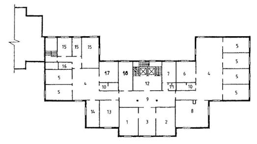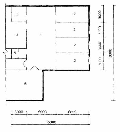 Экспликация помещений 1. Кабинет начальника управления. 2. Кабинет зам. начальника. 3. Приемная. 4. Холл для ожидания. 5. Кабинет сотрудников, ведущих прием посетителей. 6. Кабинет начальника отдела. 7. Кабинет инспектора по кадрам. 8. Зал собраний. 9. Холл. 10. Санузел для посетителей. 11. Санузел для сотрудников. 12. Лестнично-лифтовой холл. 13. Бухгалтерия. 14. Кабинет главного бухгалтера. 15. Рабочие комнаты сотрудников. 16. Кладовая уборочного инвентаря. 17. Хранилище длительного хранения пенсионных дел. 18. Машбюро. |