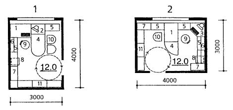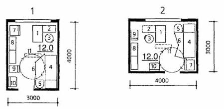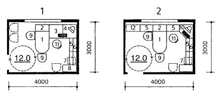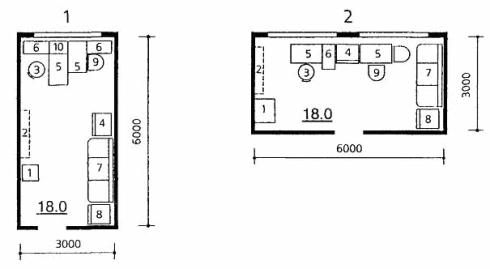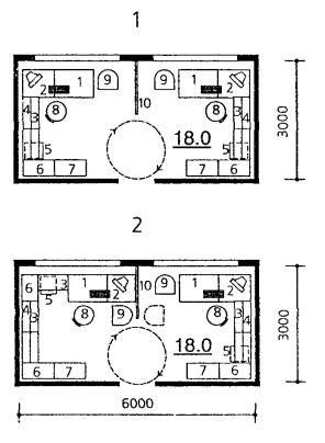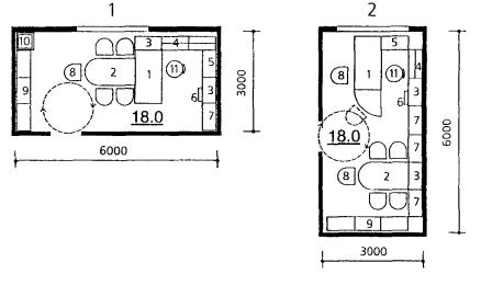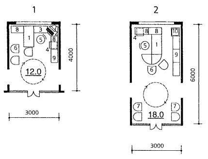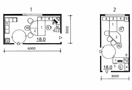 Рис. 4.8. Кабинет сотрудника, ведущего прием посетителей на одно рабочее место. Варианты 1, 2. Экспликация.
