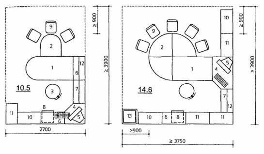 Рис. 4.22. Рабочее место начальника отдела. Варианты 4, 5. Экспликация.